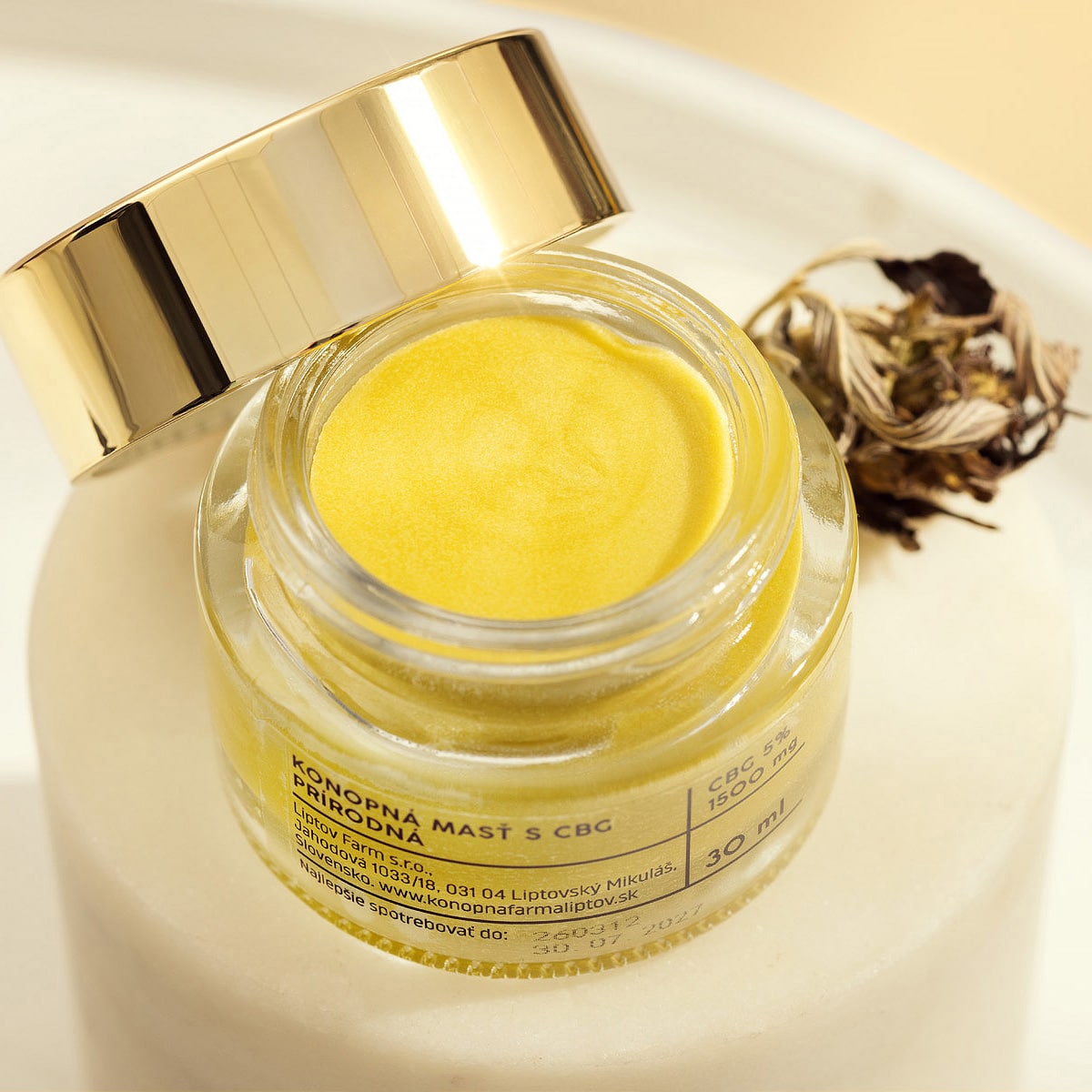 Složení: BUTYROSPERMUM PARKII BUTTER, CANNABIS SATIVA SEED OIL, BEESWAX, CANNABIGEROL, CANNABIS SATIVA LEAF EXTRACT.